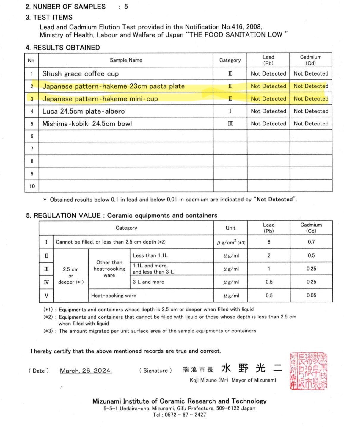 Porcelain, Minoware. Passed official lead and cadmium test.