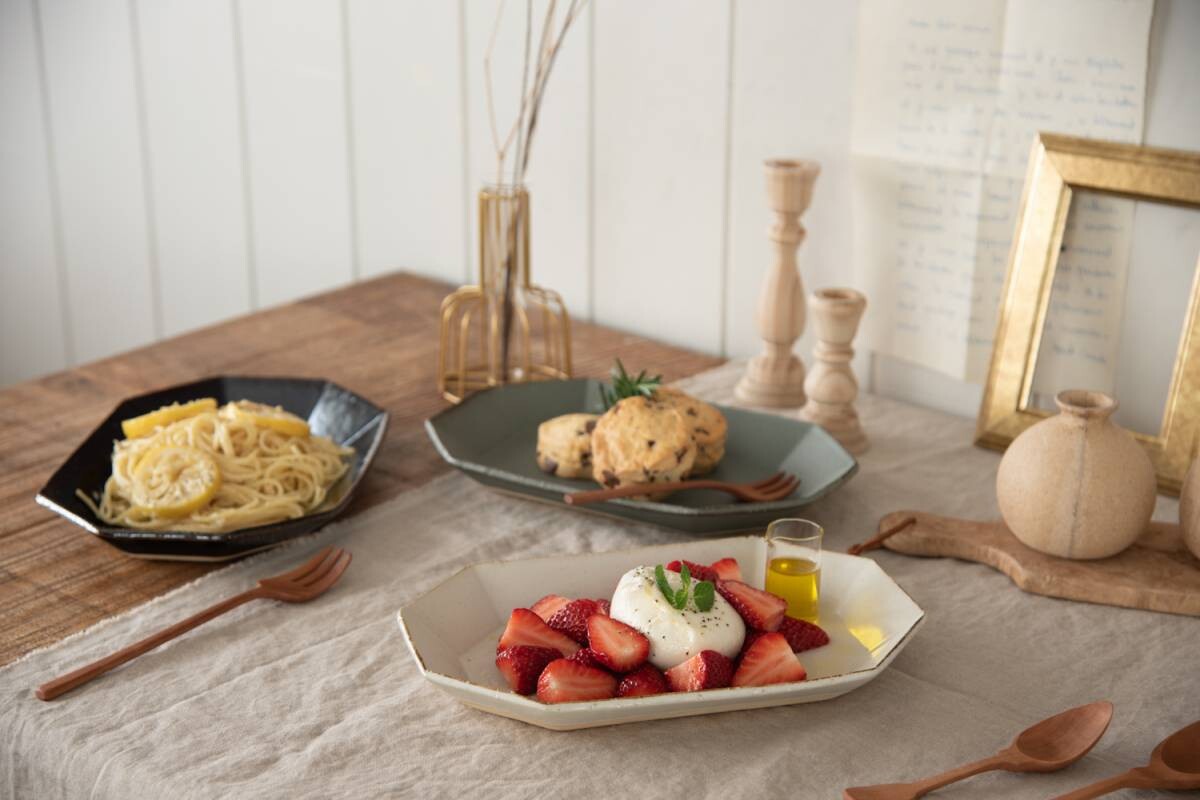 At first glance, this product looks like an industrial octagonal design, but we have created a warm impression by finishing the soft corners with our unique handmade technique. The style of this unique piece of porcelain work easily to create a cafe vibe at home.
