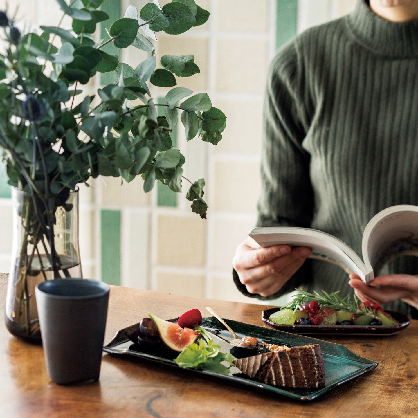 JYUZAN rim long plate (29cm x 10cm) - ever green