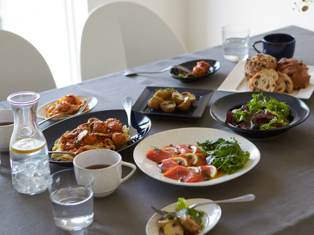 What’s special about Miyama Cadre Dinnerware Set is its unique reactive glaze. Available in white and deep indigo blue color. The natural occurring of unexpected patterns during high firing process adds richness to the plain color and brings warmth and diverse texture expression to the porcelain material. You can easily create the relaxing cafe vibe back at home with this dinnerware set.