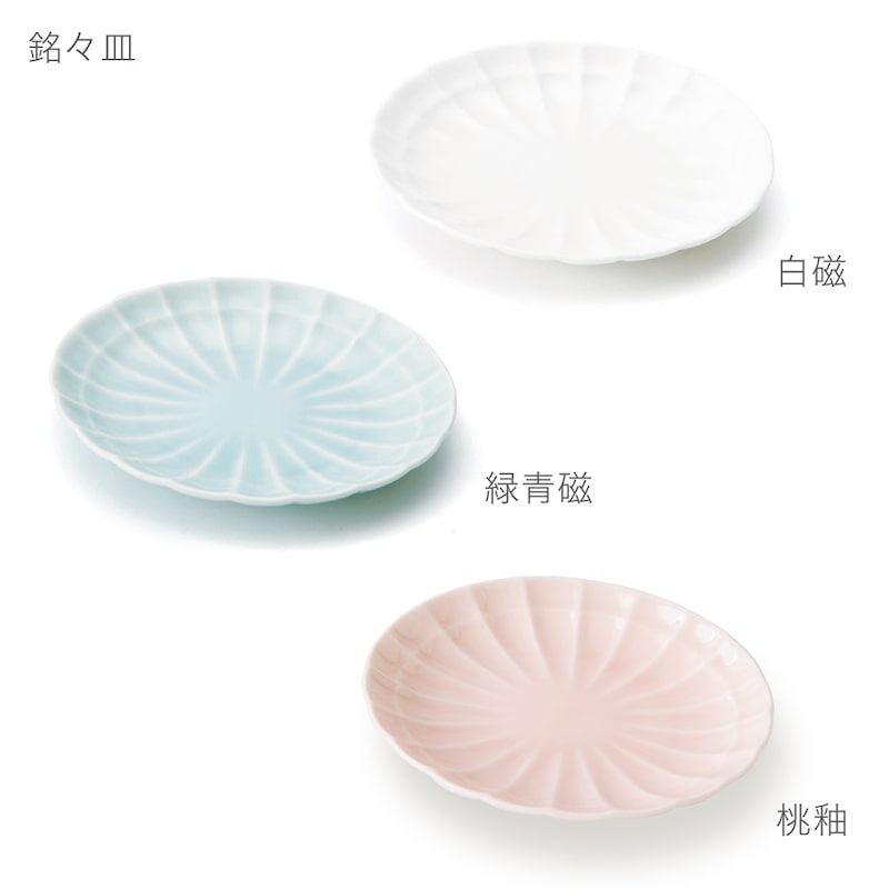3 colors to be chosen from. Clean and bright porcelain white, refreshingly cool green celadon and spring feeling peach glaze.